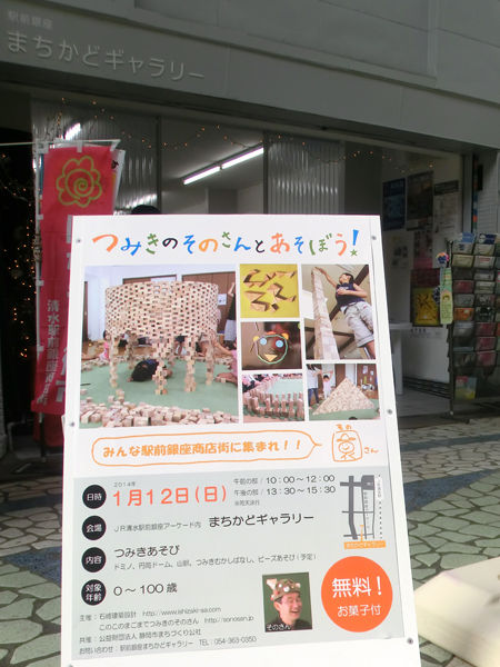 早速ですが、1月12日(日)に清水駅前商店街のまちかどギャラリーでイベントを開催します!「このこのまごまで つみきのそのさん」との共催で積み木で遊ぶイベントです。