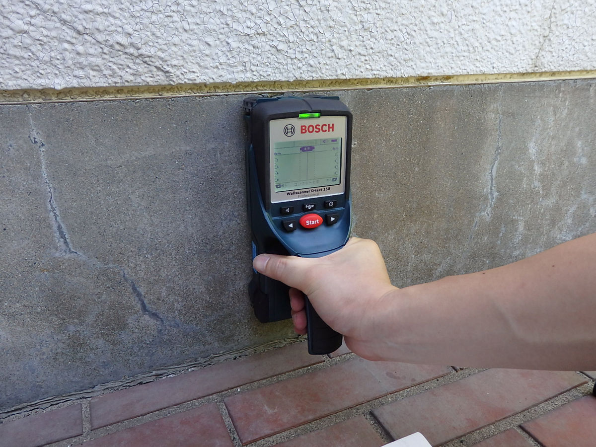 次は、鉄筋探知器を用いて基礎内の鉄筋やアンカーボルトの有無、位置を確認します。
