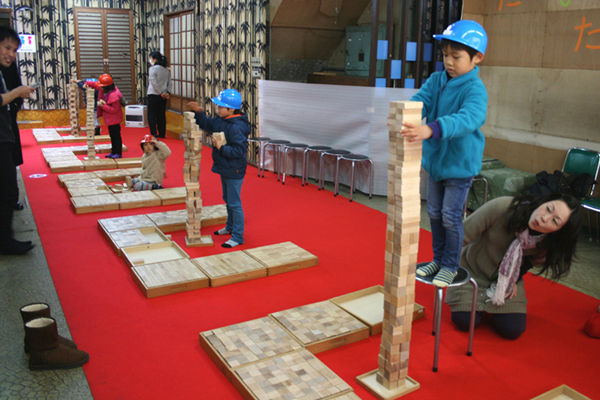 5分間で一番高く積んだ子にはプレゼントが!みんな真剣です。