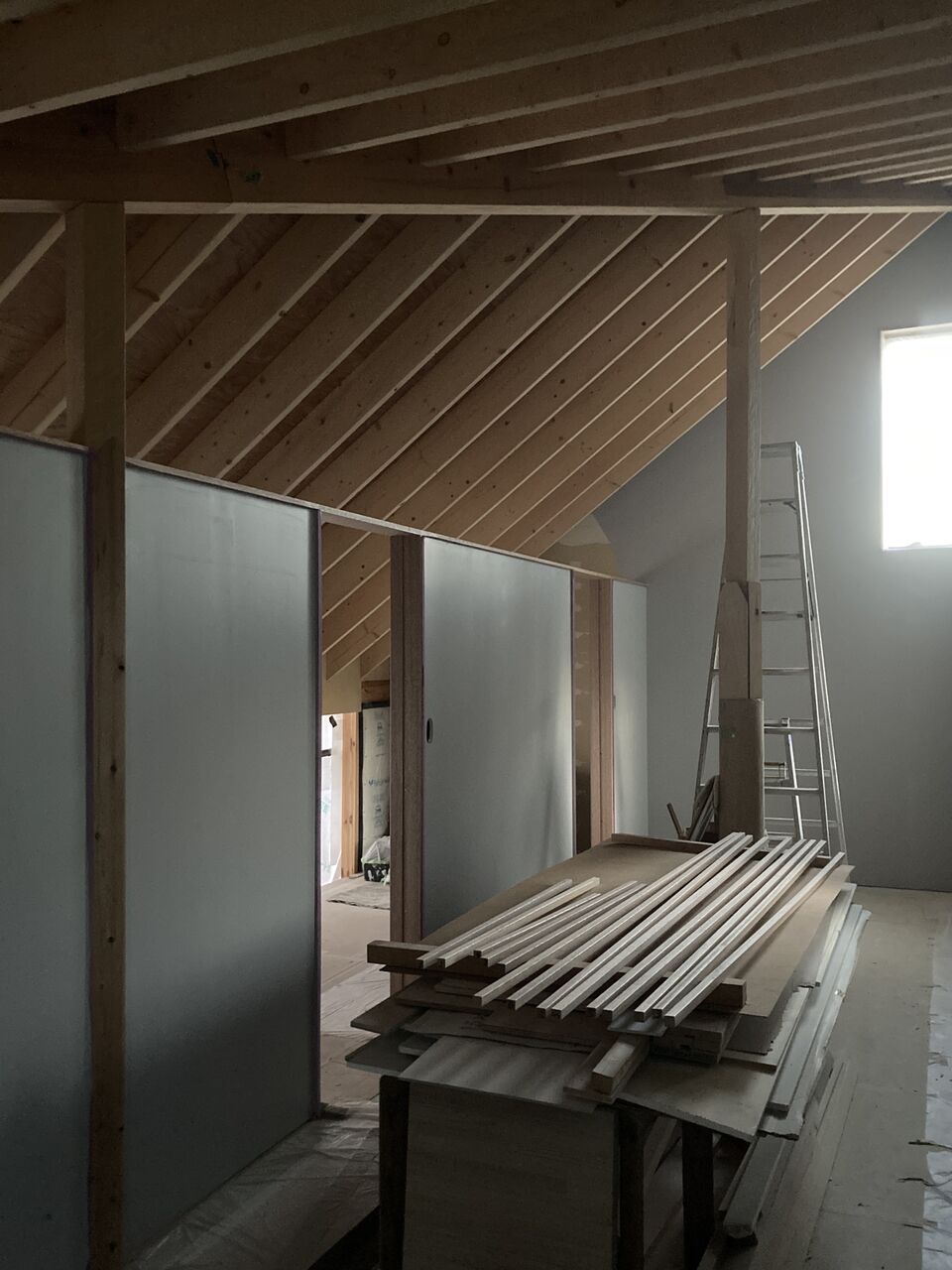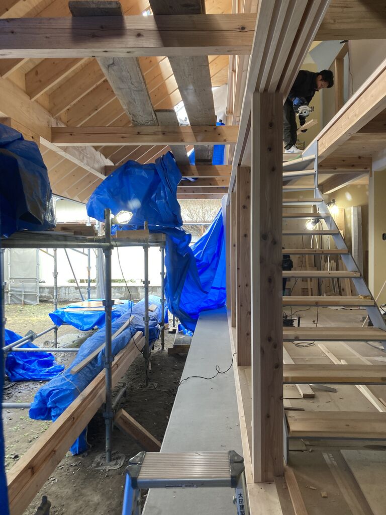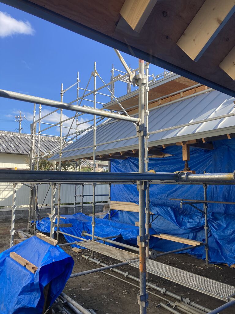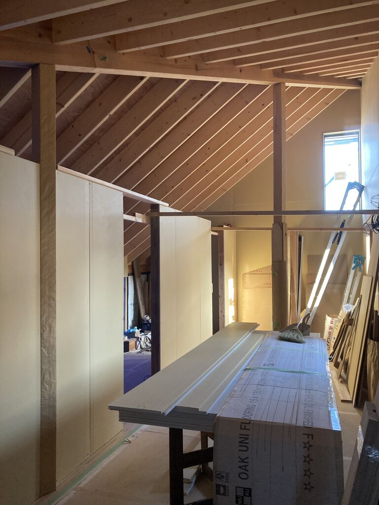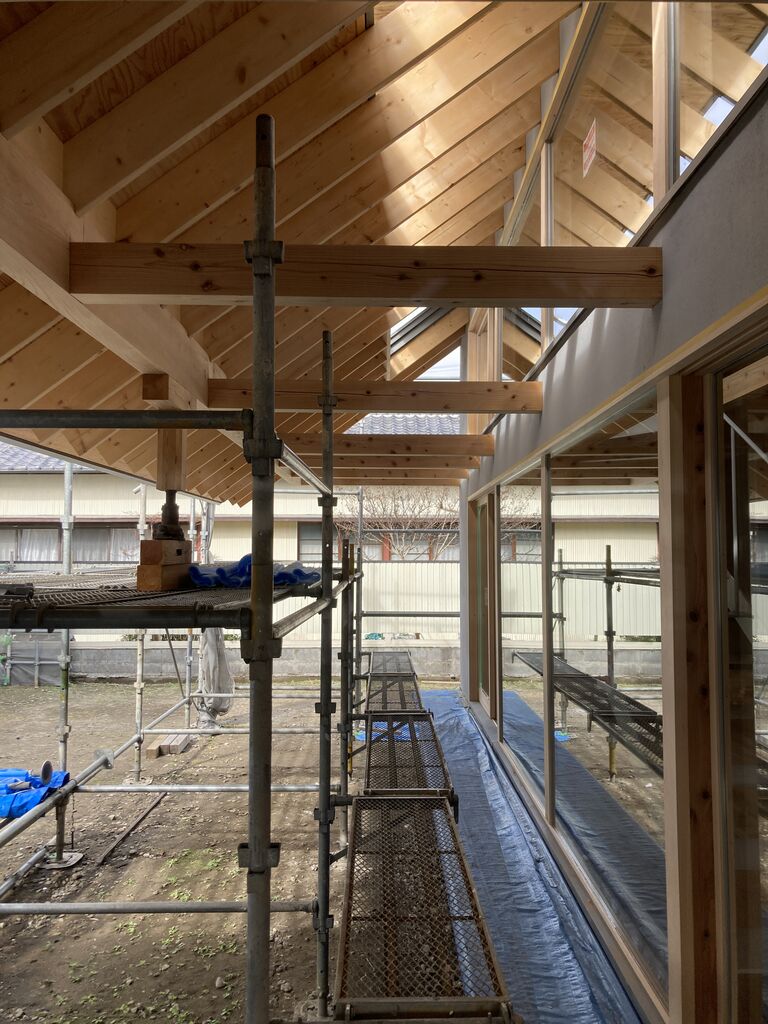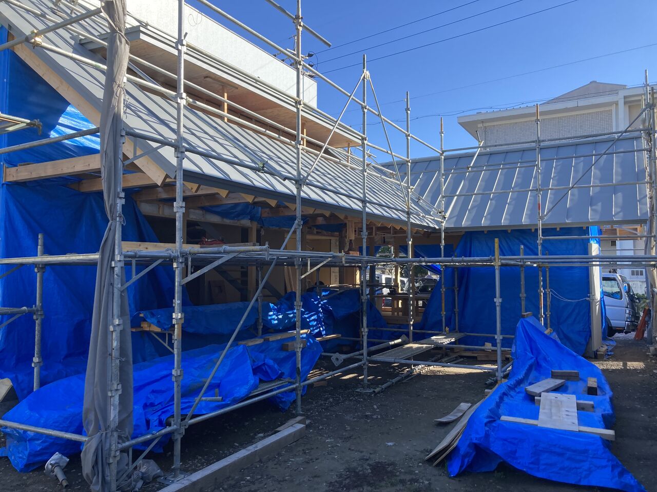 現場進行中の「折れ屋根の家」は、間もなく竣工を迎えます。
