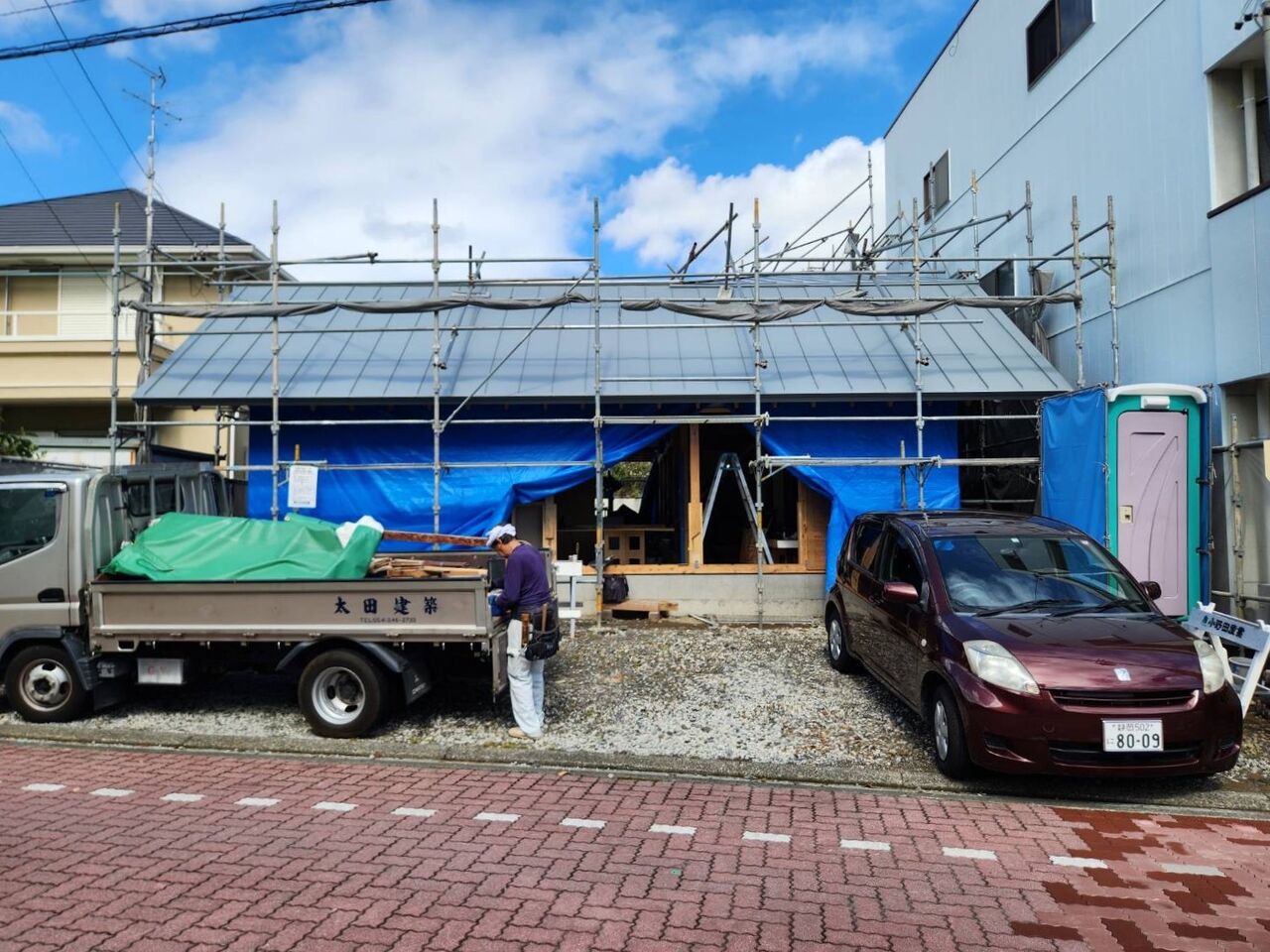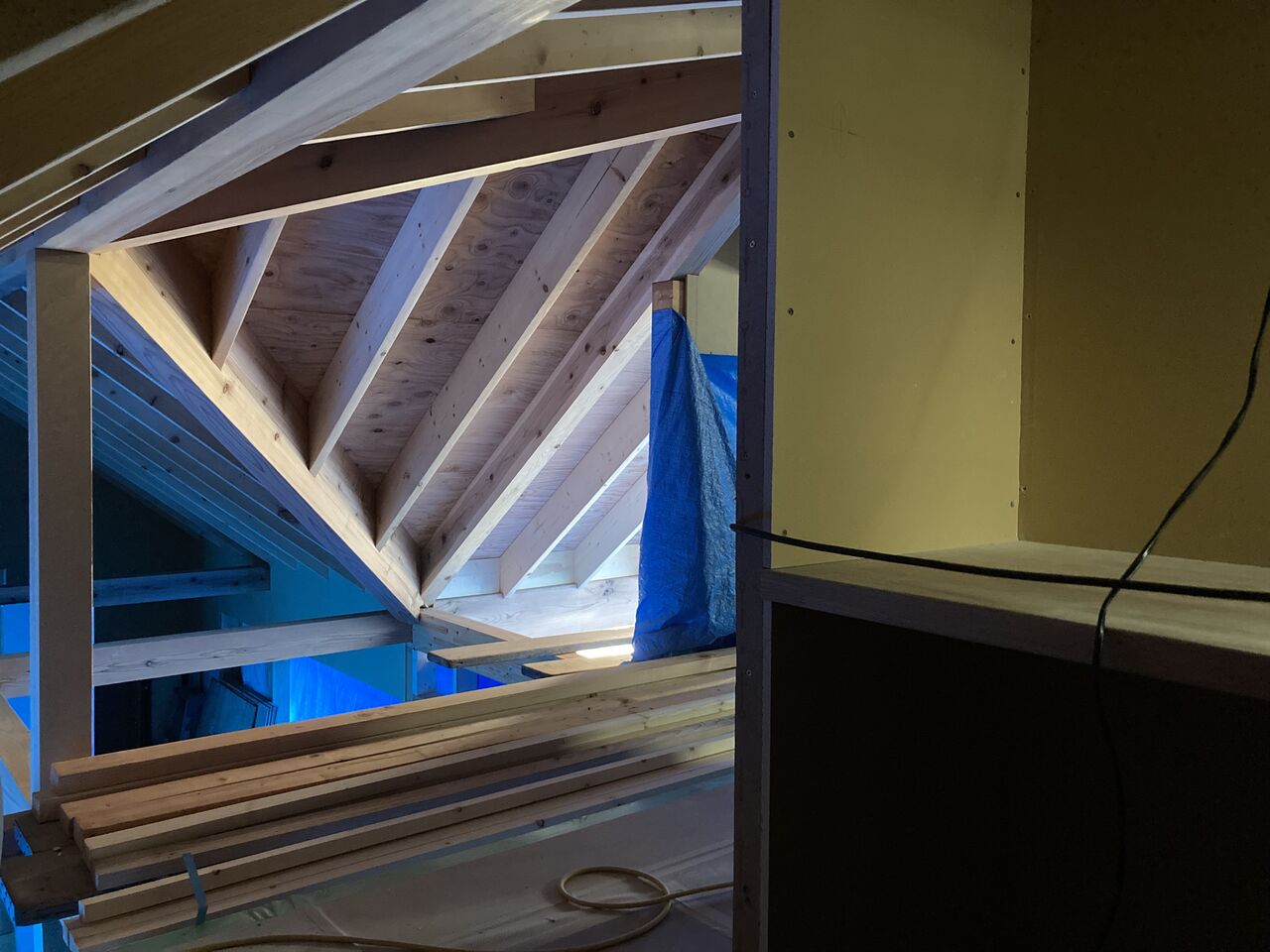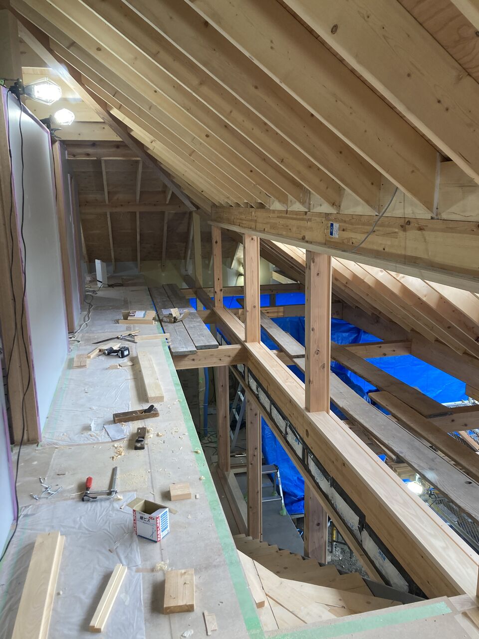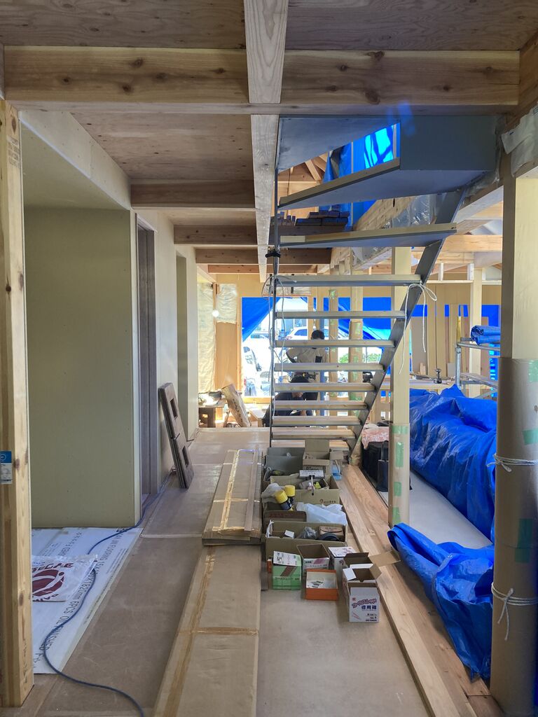 現場進行中の「折れ屋根の家」は、間もなく竣工を迎えます。