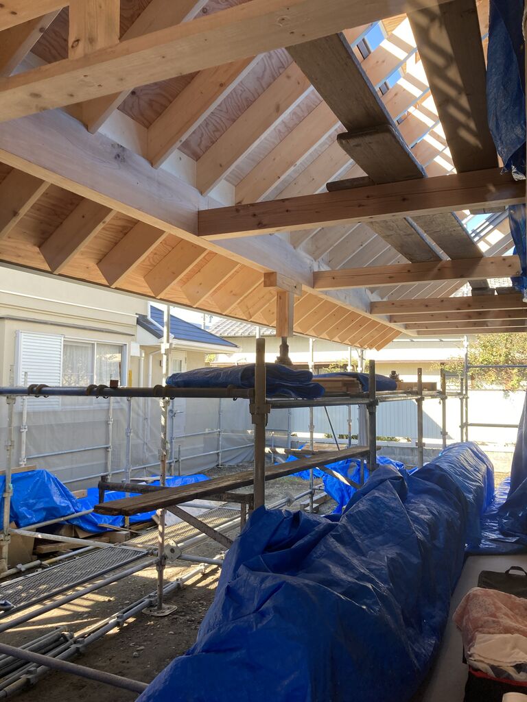 猛暑の中、難しい工事を丁寧に進めてくださる現場監督、大工さん達には本当に感謝です。
